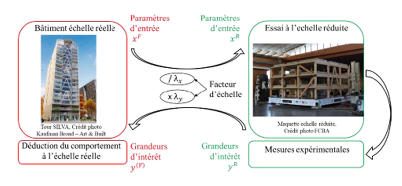 Les lois de similitude permettent de dimensionner des maquettes à échelles réduites pour réaliser tous types d’essais. Mais les relations usuelles ne sont pas adaptées aux structures en bois hétérogènes et non-linéaires (matériau composite, présence de nœuds, variabilité…).