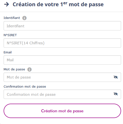 Saisissez votre identifiant électronique, votre siret, votre adresse email et le mot de passe de votre choix (à saisir 2 fois). Lorsque vous cliquez ensuite sur « Création du mot de passe », une petite fenêtre verte s’affiche sur le site vous indiquant qu’un email vous a été envoyé. Il ne vous reste plus qu’à cliquer dans le lien contenu dans ce courriel.