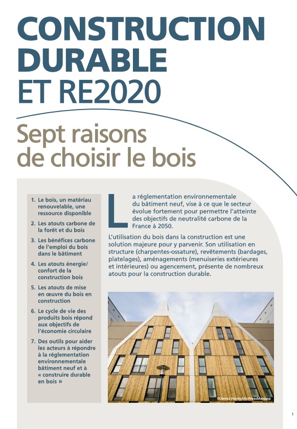 Ce document, financé par le CODIFAB et FBF, dévoile en 7 points les raisons de choisir le bois.