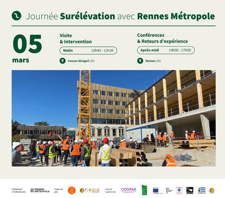Dans la perspective de l’application du « Zéro Artificialisation Nette » (ZAN), Rennes Métropole, Fibois Bretagne et le CNDB ont proposé visites, conférences et retours d’expériences le 5 mars dernier, de 10H45 à 17H. Cette journée s'est organisée autour de deux événements :