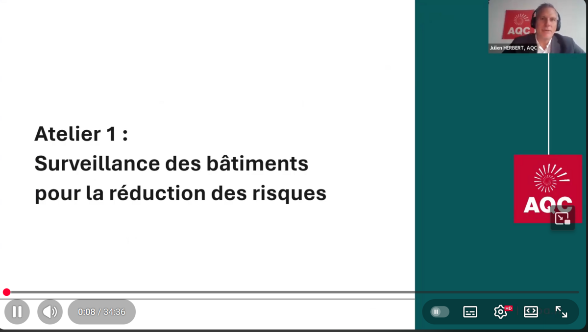 - Atelier 1 : Surveillance des bâtiments pour la réduction des risques, par Julien Herbert, AQC.