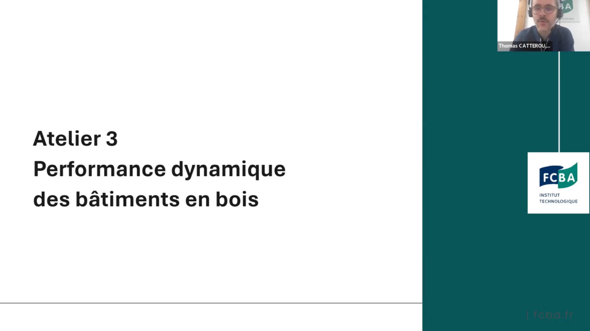 - Atelier 3 : Performance dynamique des bâtiments en bois, par Thomas Catterou, FCBA.