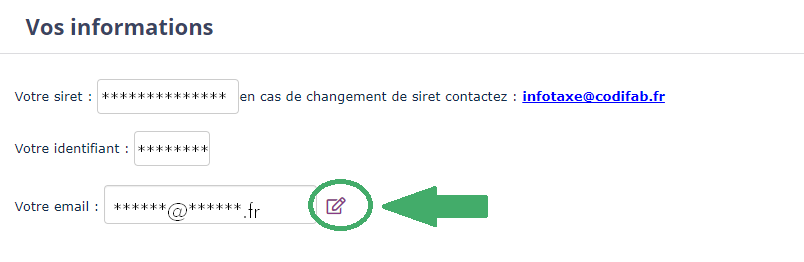 Cette adresse est utilisée pour l’envoi des confirmations de déclarations, paiements ainsi que pour tout autre courriel émis par nos services concernant la taxe fiscale affectée au CODIFAB.