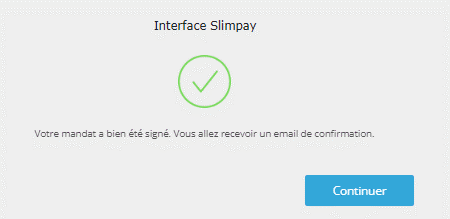 Cliquez ensuite sur « continuer » pour que votre mandat soit enregistré sur votre espace sécurisé et que votre paiement soit pris en compte.